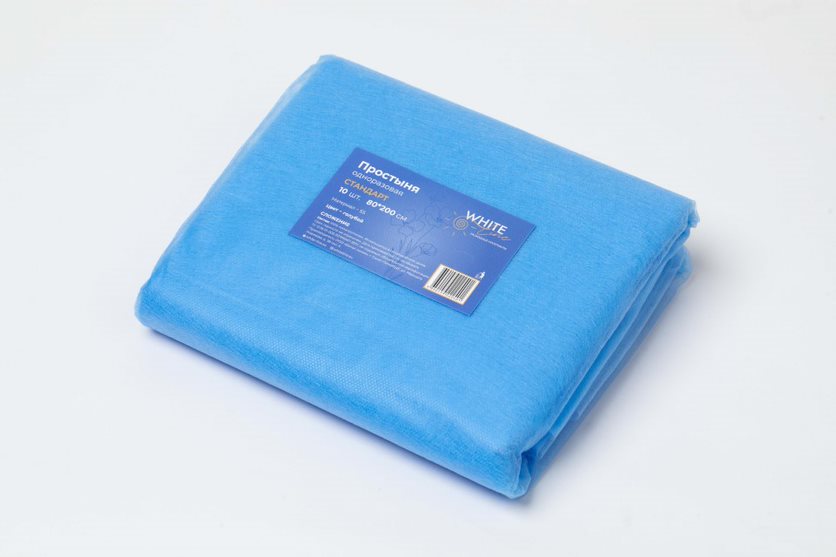 Простыня одноразовая White line 80*200 SS стандарт голубой №10 пачка
